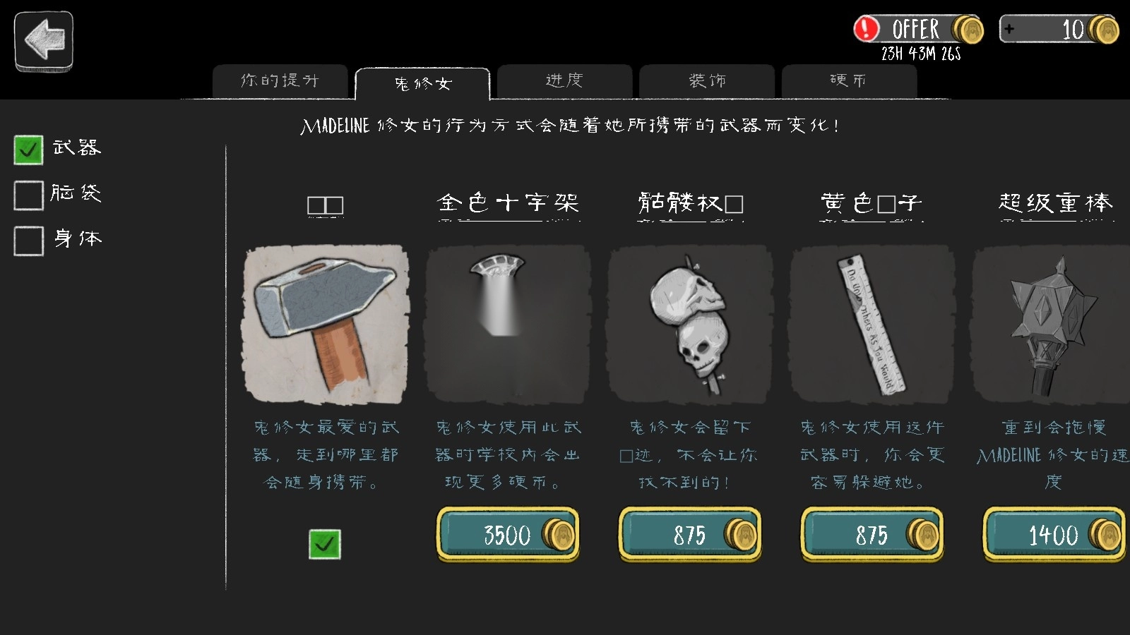 9、也可以改变修女的武器和攻击方式。