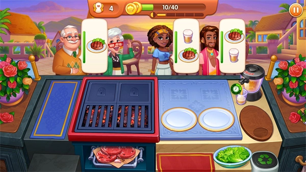 深度升级系统:用金币升级厨具、食材品质,还能扩建餐厅座位,提升翻台率和收入。