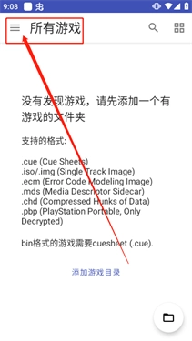 1、在本站安装并打开duckstation模拟器,将手柄连接到手机设备后,点击界面左上方的三条杠按钮