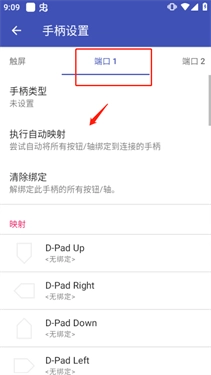 3、接着在“手柄设置”上方导航栏中选中端口 1选项,并在打开的界面中执行自动映射或手动设置手柄按键映射