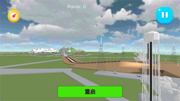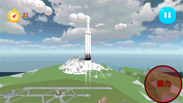 重新开始游戏后,可以点击【推力】按钮火箭飞行器发射升空。