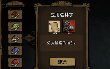在饥荒新家游戏玩家想要制作魔法书,必须要使用老奶奶角色。在游戏入口我们选择老奶奶决策之后,进入游戏就会在游戏的左边发现一个魔法书的选项图标。点击魔法书的选项图标,我们就可以看见制作各种魔法书需要的材料了。