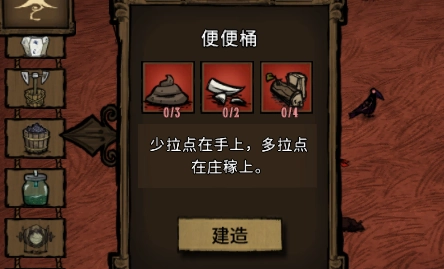 第2种方法是将食物放在那里,等其变成腐烂的食物之后,也可以用作肥料。通常我们是采用浆果将其腐烂作为肥料,因为浆果廉价而且可以大量获得,并且其保质期较短,制作肥料的周期也相对较短。不过这个种缺点是,这种肥料基本上只能给农场施肥或者是添加燃料,并不能制作便便桶。