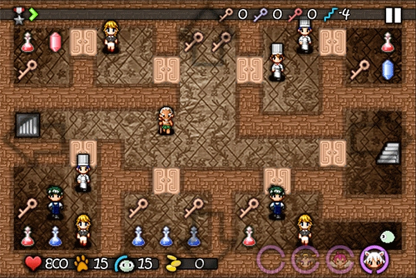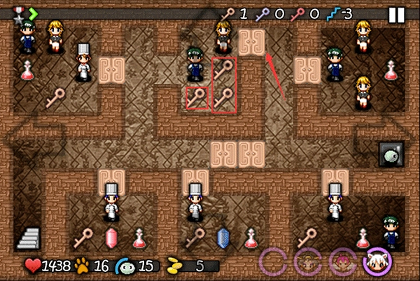 开上面的门获取红宝石和钥匙 蓝药水(只攻击中间那个厨师,其他怪搁置)