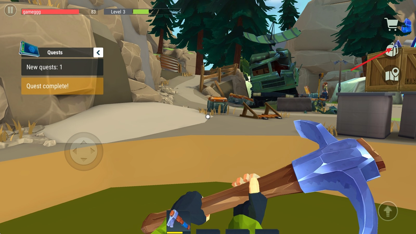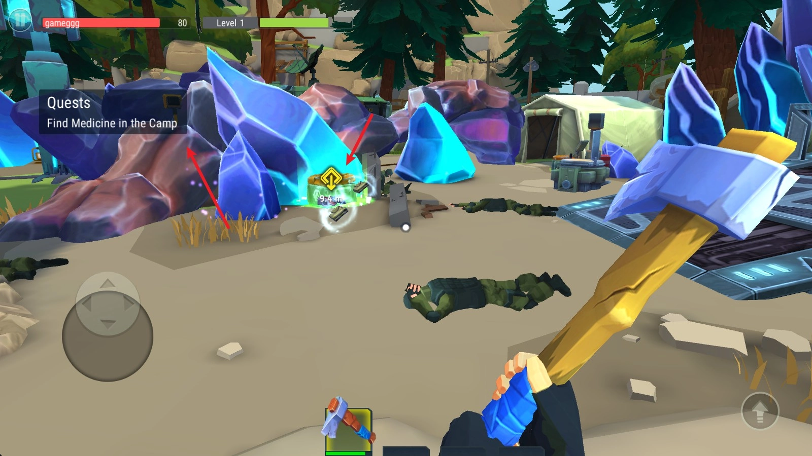 3、游戏中,我们根据任务的指引前往目的地,拖动左侧屏幕即可移动。