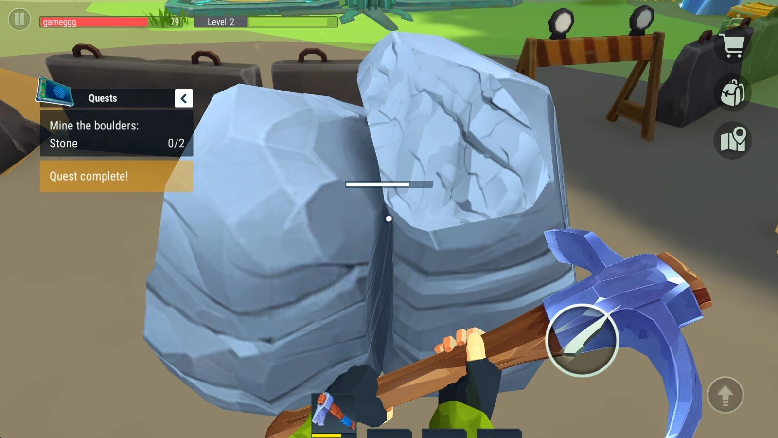 6、还有就是利用工具采集资源,需要切换到对应的工具,例如石头就需要用到镐。