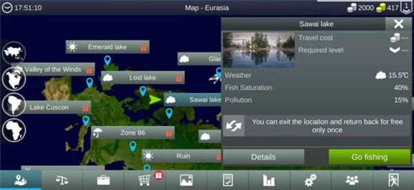 1.进入游戏后,即可选择区域开展钓鱼活动。