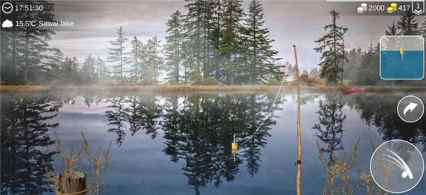 画面超逼真,甩竿时能看到水面涟漪,鱼咬钩时手机会震动,仿佛真的握着钓竿!