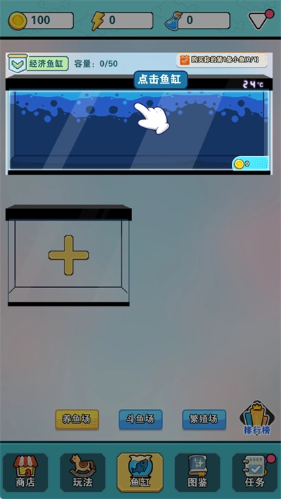 进入游戏后,点击鱼缸。
