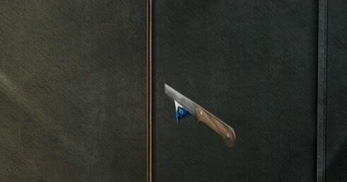 2、小刀在石头上磨锋利后划开帐篷。