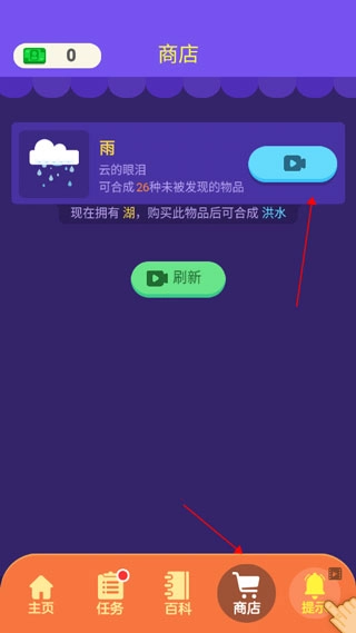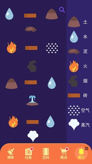 4、如果遇到瓶颈期了,不知道怎么合成新元素可以点击提示,它会指引你如何合成新的元素