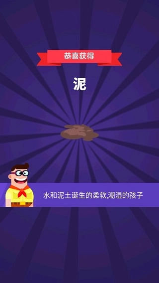 1、进入游戏后,界面右侧会呈现各类基础元素,玩家需通过点击并拖拽元素的方式进行合成,例如把泥、水和石头这三种元素拖拽到一起,就能合成出黏土。按照这样的合成逻辑,玩家最终可以合成出成百上千种不同的元素。