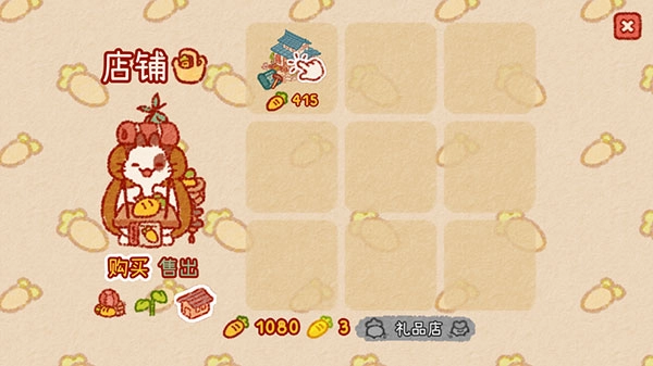1、安装好兔兔岛游戏最新版,运行游戏,点击兔子商人,开始购买岛上的第一件装饰。