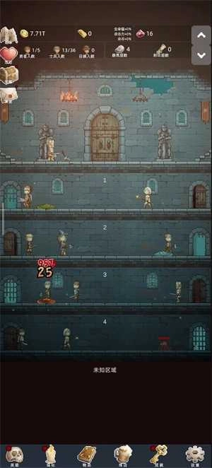 1、进入游戏后会自动召唤角色来攻击地牢里的敌人。