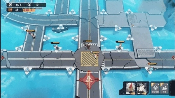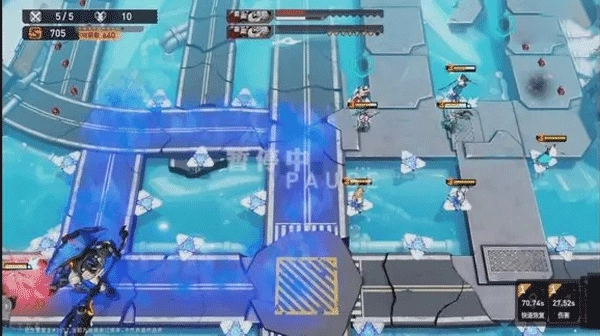 接着把消防栓,粉毛都往右移一个单位,把克莱放到左边,接着看霸王准备攻击粉毛的时候,星栀给粉毛技能,艾雯开大全体加盾(复活极乐,用炸弹炸霸王)。