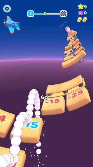 1、落到带有数字的木板上,就会根据上面显示的增加或者减少小球。