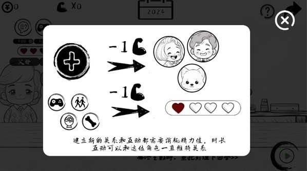 3、在推进主线的同时,你还可以与其他角色建立联系,互动过程中会消耗一定精力值,保持频繁交流有助于维持长久关系。