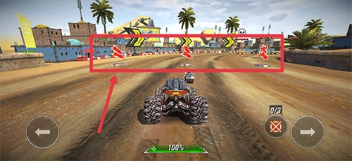 2、在正式比赛中,车辆将自动前进,玩家只需通过点击左右方向键控制车辆的移动;