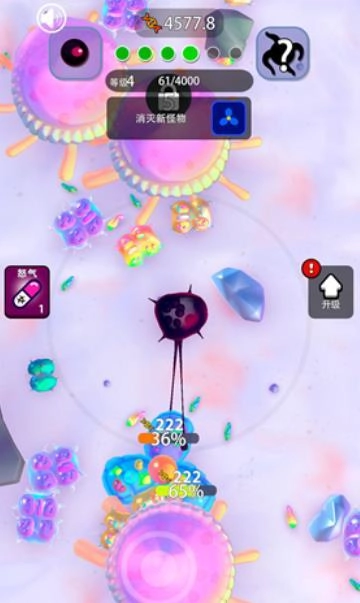1、在场景中搜寻可吞噬目标,优先攻击低防御敌人快速积累进化能量。