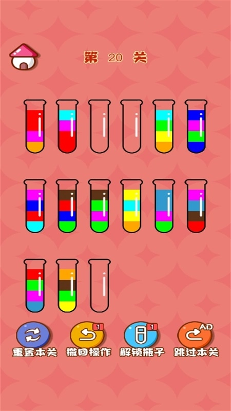1、把试管里颜色各异的液体进行分类,这是一款充满创意的休闲小游戏。