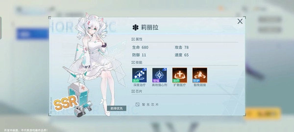 因为SSR里只有一个坦克,她就作为兰思妮的下位替补吧!强度也是可以的,因为她的防御可以叠很高很高,同时也可以升格到SSR!