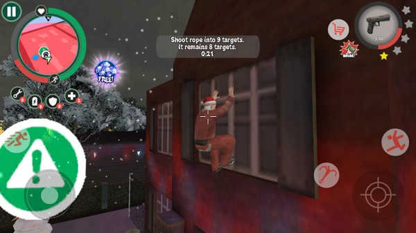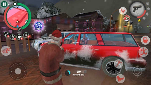 1、这是一款扮演圣诞老人自由犯罪的手机游戏,在开始之前可以为自己的圣诞老人配好装备