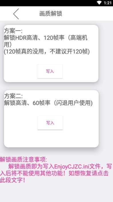 1、一个非常简单的游戏质量调整软件,无论手机型号。