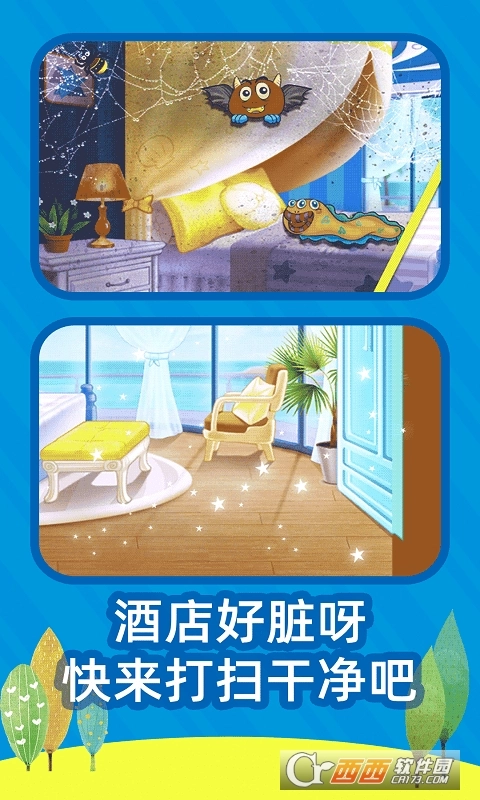 4、可以在艾莎去度假游戏清理脏脏的酒店、邮轮以及水族馆,提升动手能力;