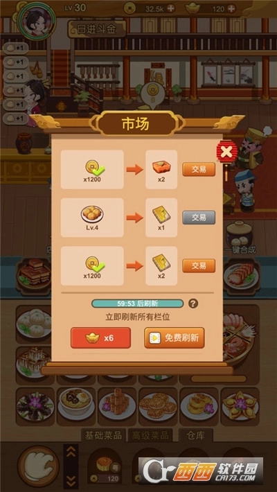 客官里边请是一款模拟经营类小游戏,能让每个人都有机会开一家属于自己的餐馆,摇身一变成为餐馆老板。游戏玩法很简单,你要做的就是采购各类食材,扣除成本后,把食材加工成菜品卖给顾客,从中赚取的差价就是你的利润啦。