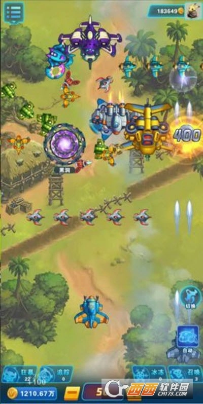 3. 捡起空中的子弹和道具强化飞机,双击屏幕释放技能;