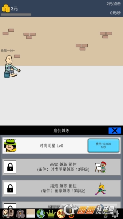 你可以雇佣时尚达人,小丑,画家,钢琴家,足球选手,科学家,医生,法官,国王,外星人做乞丐打工,以增加乞讨聚敛的钱!