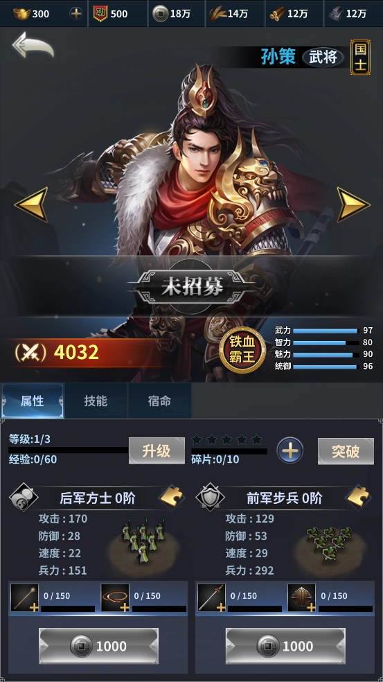 3兵种技能,步兵不学冲锋,弓兵齐射轮射二选一。