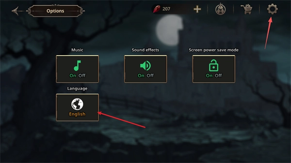 1、点击右上角的设置按钮,然后选择English选项。