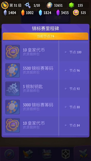 锦标赛每次刷新两个图,只打偶数图就行了,前5名可以获得传奇装备,可以拼一下。尽量打到100层,可以获得不少材料。锦标赛的游戏币可以给全新装备充能,就是洗天赋。