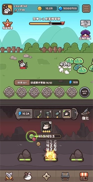 1、进入游戏后,角色会自动攻击出现的怪物敌人,击败敌人就能获取金币。