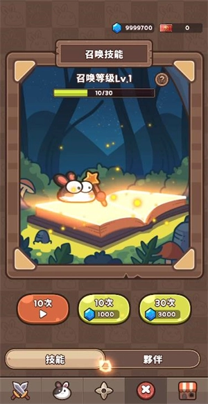 5、点击宝箱按钮可以消耗钻石来抽取技能与伙伴,每次抽取可以获得的技能与伙伴都是随机的。