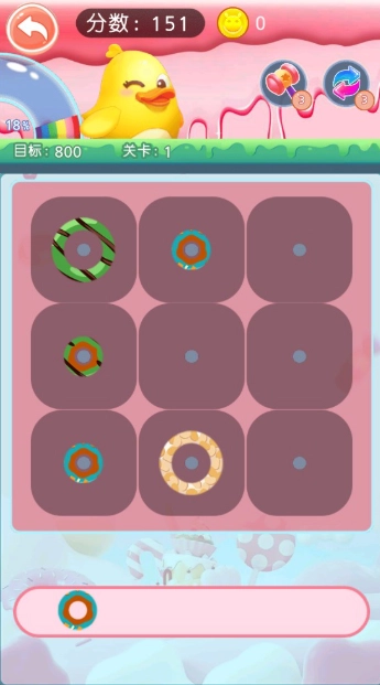 3、经典三消玩法,将三个相同的甜甜圈放在一起即可完成消除。