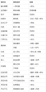 如下是我总结的事件的一些推荐选项。(如果推荐的结果是有损失的,就代表了该事件的其它选项损失更大)