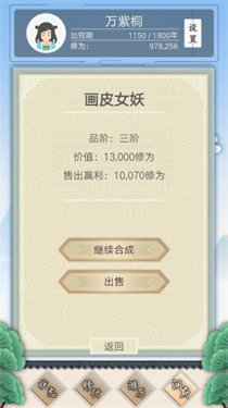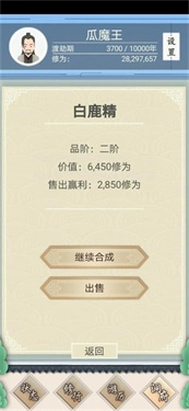 所以最划算的就是每次都选两个猫妖合成,合成白鹿精后就卖掉。等有仙树后,每轮的这几千修为的收益就比较小了,而且操作起来麻烦、费时间,我一般都直接放弃了。