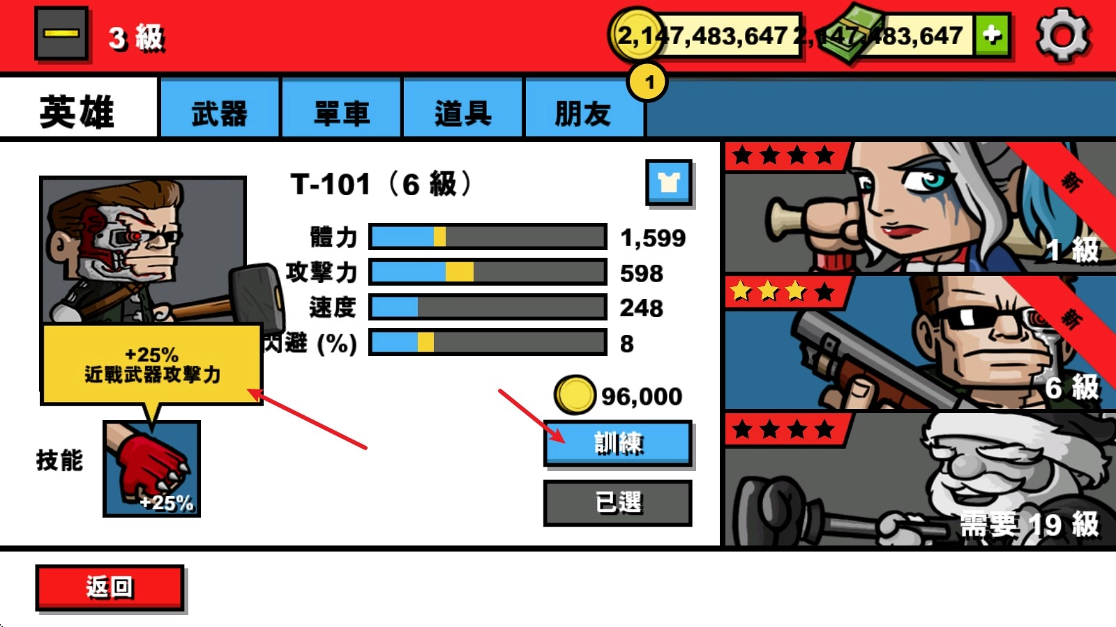 3、解锁后还可以通过训练来提升他的等级,解锁专属的技能。