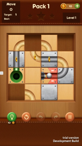 滑球拼图是一款休闲益智类游戏,玩法别具一格。它融合了华容道与拼图构造的玩法,玩家需要在有限的空间里滑动滑块,把滑块中的通道连接起来,使小球能通过通道抵达终点小洞。此外,关卡中还加入了星星收集元素,这不仅提升了游戏难度,也增强了游戏的趣味性。