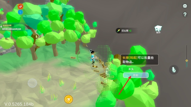 5、材料可以通过探索周围的环境来获得,长按即可批量拾取。