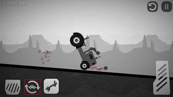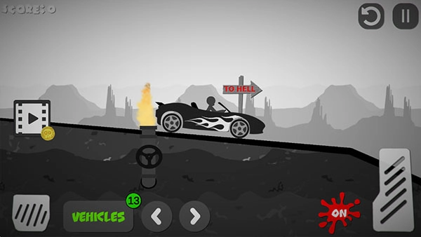 2、开始游戏后,玩家需要通过点击左右两侧的刹车以及按键控制车辆撞击前方的火柴人。
