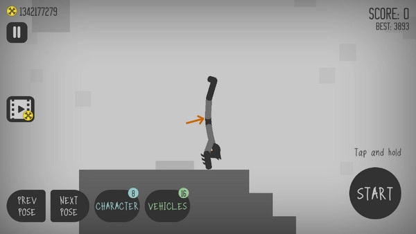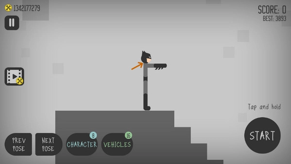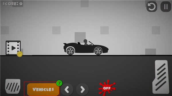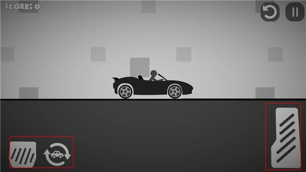 3、活用按钮,左边的按钮是让车减速或者后退的,右边长条的按钮是加速前进的,而有汽车标志的是让车重新从空中落下的,反复使用这三个按钮可以让火柴人受伤更多: