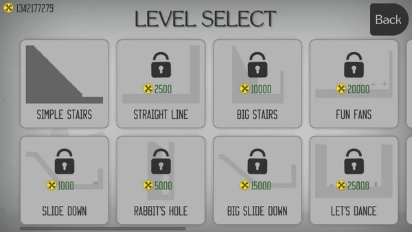 5、关卡页面如图,除了第一关,其他的关都需要有足够的金币才能解锁,我们可以重复玩第一关,获取到足够的金币,才能解锁第二关,