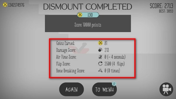 点击下方的“AGAIN”按钮,是重新开始该关卡