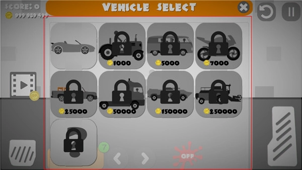 7、这就是购买车辆的页面,每种车需要不同数量的金币,有足够的才能买对应的车,当然越贵的车,受伤指数会越大的,点击能购买的车,弹出确认框,点击‘OK’就可以了,