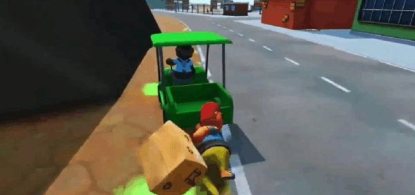 1、游戏内可选择的派送方式千奇百怪,例如用拖车去送快递,不过可是被拖车拖着走的,毕竟小拖车太小,坐上去属实有些难度。