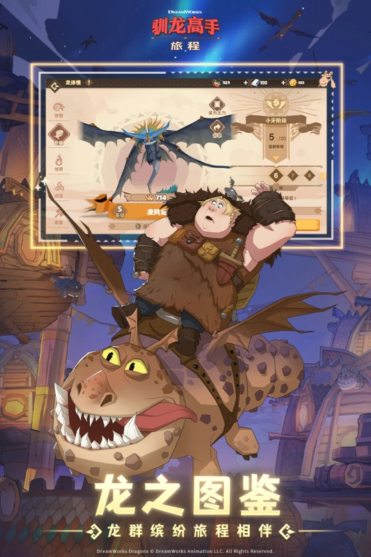 驯龙高手:旅程免费版是由环球影业及其子公司梦工厂动画授权,明日世界自主开发并发行的模拟管理与驯龙游戏。在游戏里,玩家能够招募、驯服、繁殖并养育各类特色鲜明的飞龙伙伴,组建一支强大的驯龙队伍,与龙族一同在“天空竞赛”中称霸,守护“博克岛”,并致力于让博克岛愈发繁荣。故事背景设定在维京时代,这次,玩家将在博克岛的龙训练基地化身龙骑士,再次与Hiccup、Toothless以及众多熟悉的朋友重逢,共同开启全新的旅程!
