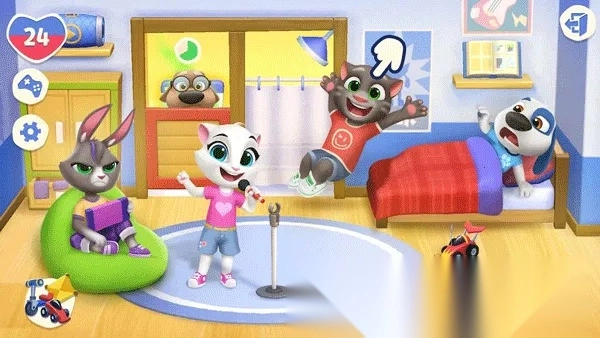 1. 丰富互动玩法:能与汤姆猫、安吉拉等角色进行喂食、清洁、玩耍、唱歌、游泳、做饭、园艺等互动,提升角色心情值,解锁更多剧情和任务。